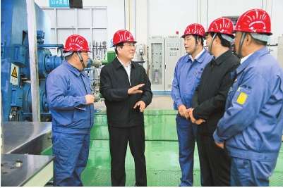 11月9日,省委书记、省人大常委会主任林铎深入酒钢集团公司调研生产经营情况,并向企业干部职工宣讲党的十九大精神。本报记者徐爱龙